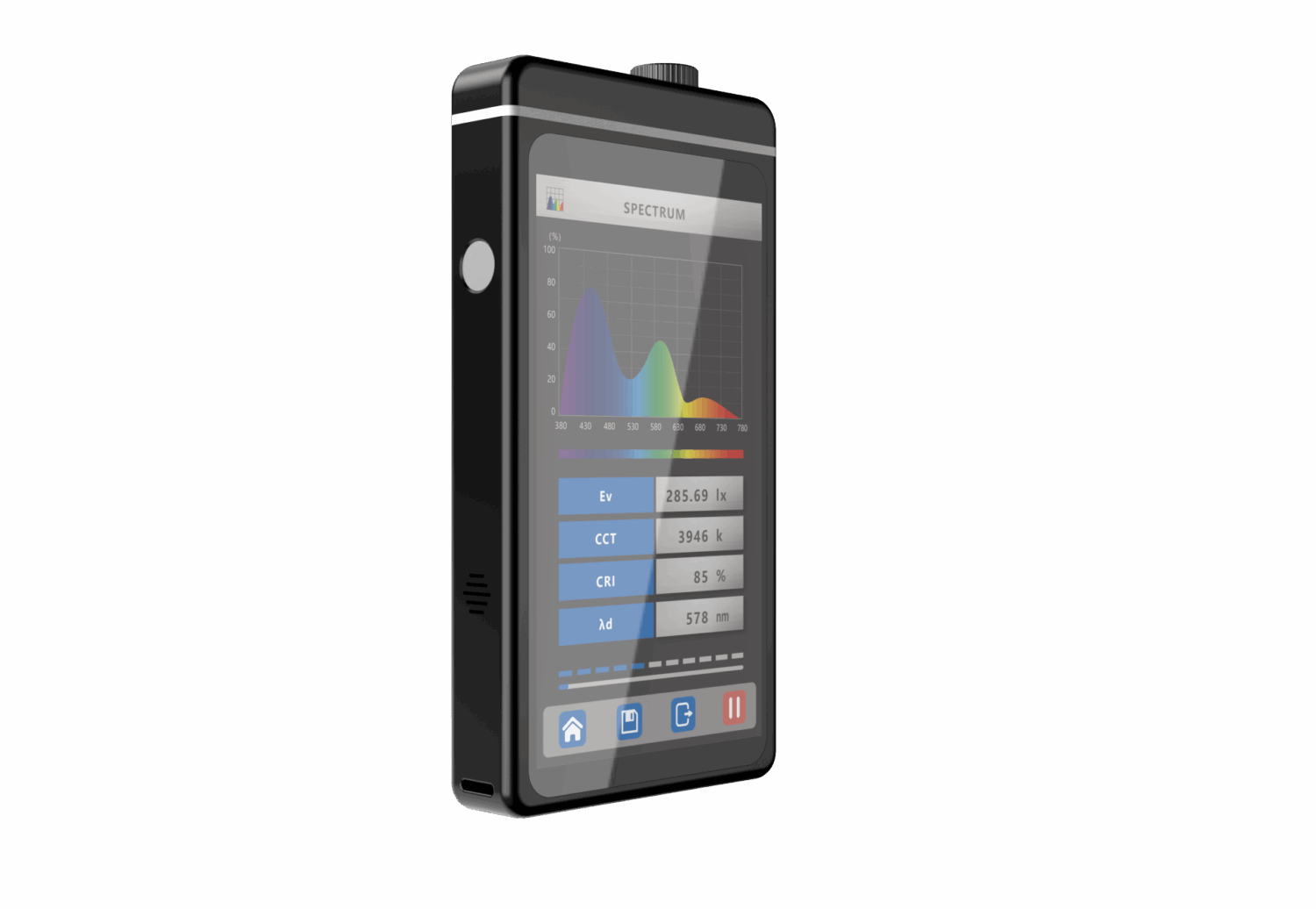 其內建高解析光譜感測模組與即時運算核心,能在短時間內完成全波段光譜掃描,並以視覺化圖表呈現光線分佈、透過率、與紫外線阻隔效果等關鍵光學指標。